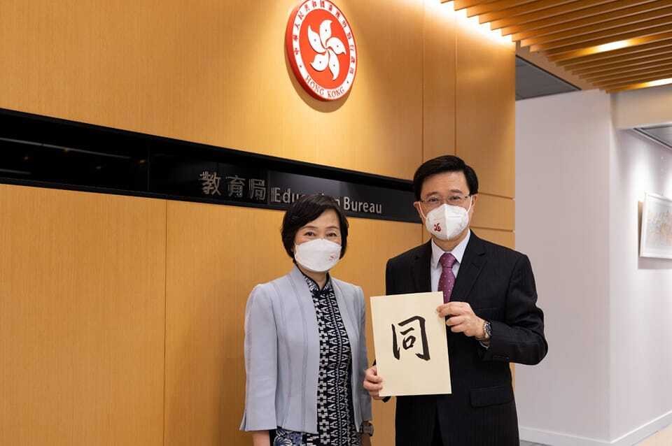 特首李家超向考生贈字“同” 圖源:李家超Facebook圖片 政務司司長陳國基以“心”字勉勵考生,意指“心態決定一切”,又期望考生持正確心態,抱有決心和信心,邁步前進。財政司司長陳茂波前日到訪正生書院,親身為該校考生打氣,又以“恒”字提醒考生“恒者,行遠”。律政司司長林定國則向考生送上“過”字,希望考生明白文憑試只是漫長人生的一個過程,成績如何都要繼續向前看,勇敢向前邁進,尋獲光明前途。