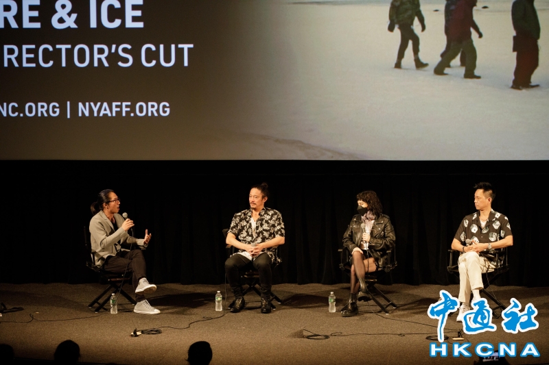 •   香港女歌手及電影演員何超儀(紐約時間7月18日)獲邀出席紐約亞洲電影節的放映活動。圖為何超儀(右二)、監製陳子聰(左二)和導演陳金(右一)參與映後答問環節。 香港中通社圖片