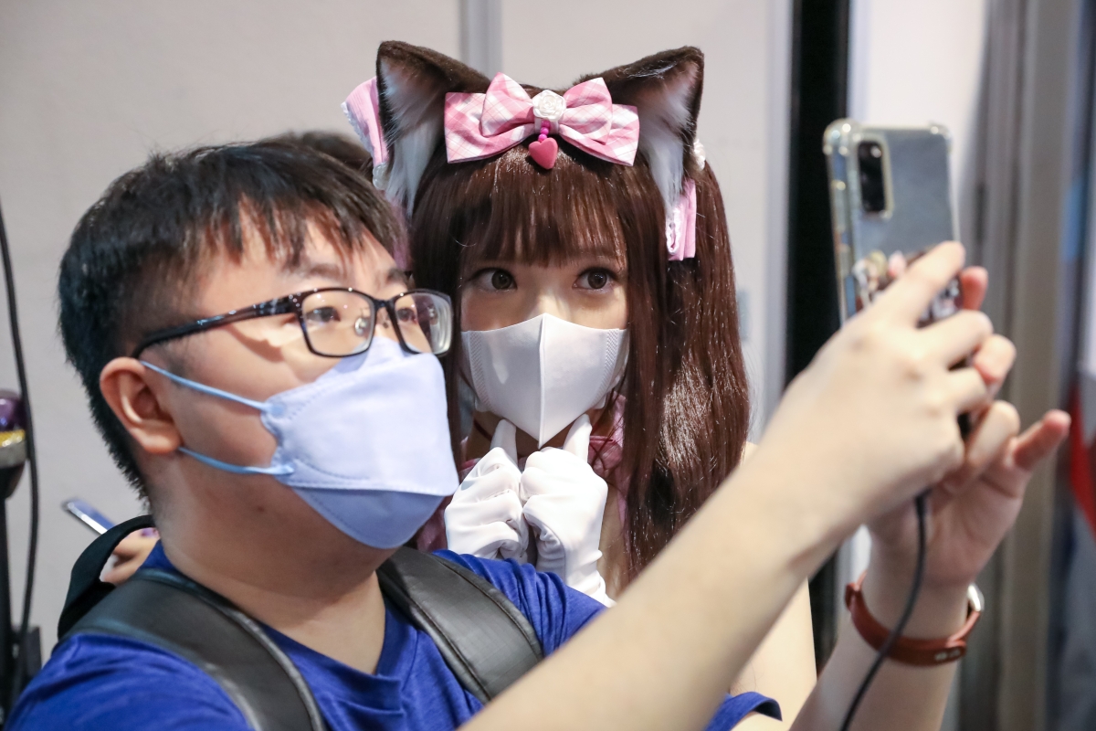 香港中通社記者 謝光磊 攝 一些Coser也吸引了不少“粉絲”高舉相機要求合影。