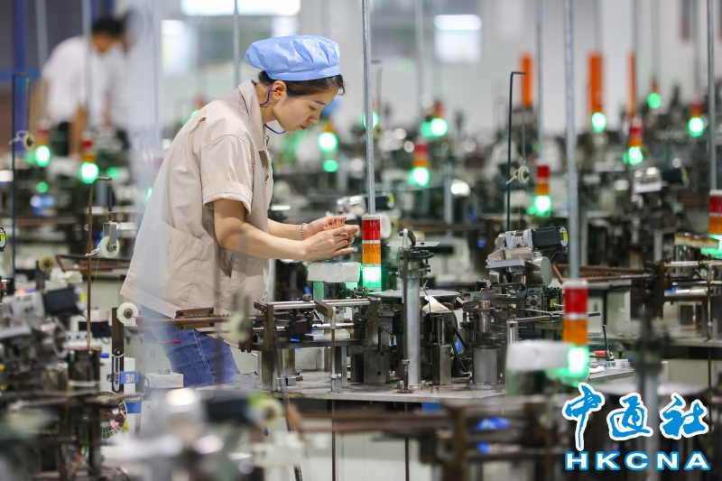 •   8月10日,中國國家統計局公佈,7月份,中國全國工業生產者出廠價格(PPI)同比上漲4.2%,漲幅比上月回落1.9個百分點。今年以來,中國PPI同比漲幅已連續7個月回落。圖為7月15日,江蘇鎮江一家製造企業內的生產景象。 香港中通社圖片