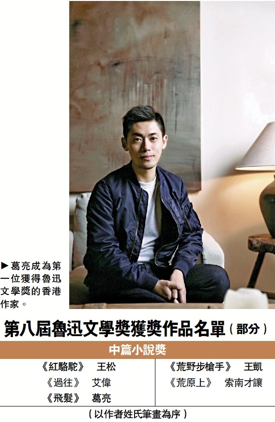 香港中通社8月25日電 (記者 李明珠) 第八屆魯迅文學獎8月25日在北京揭曉,香港作家葛亮以作品《飛髮》獲得中篇小說獎,成為香港首位獲獎作家。這也是香港文壇一個重大突破。
