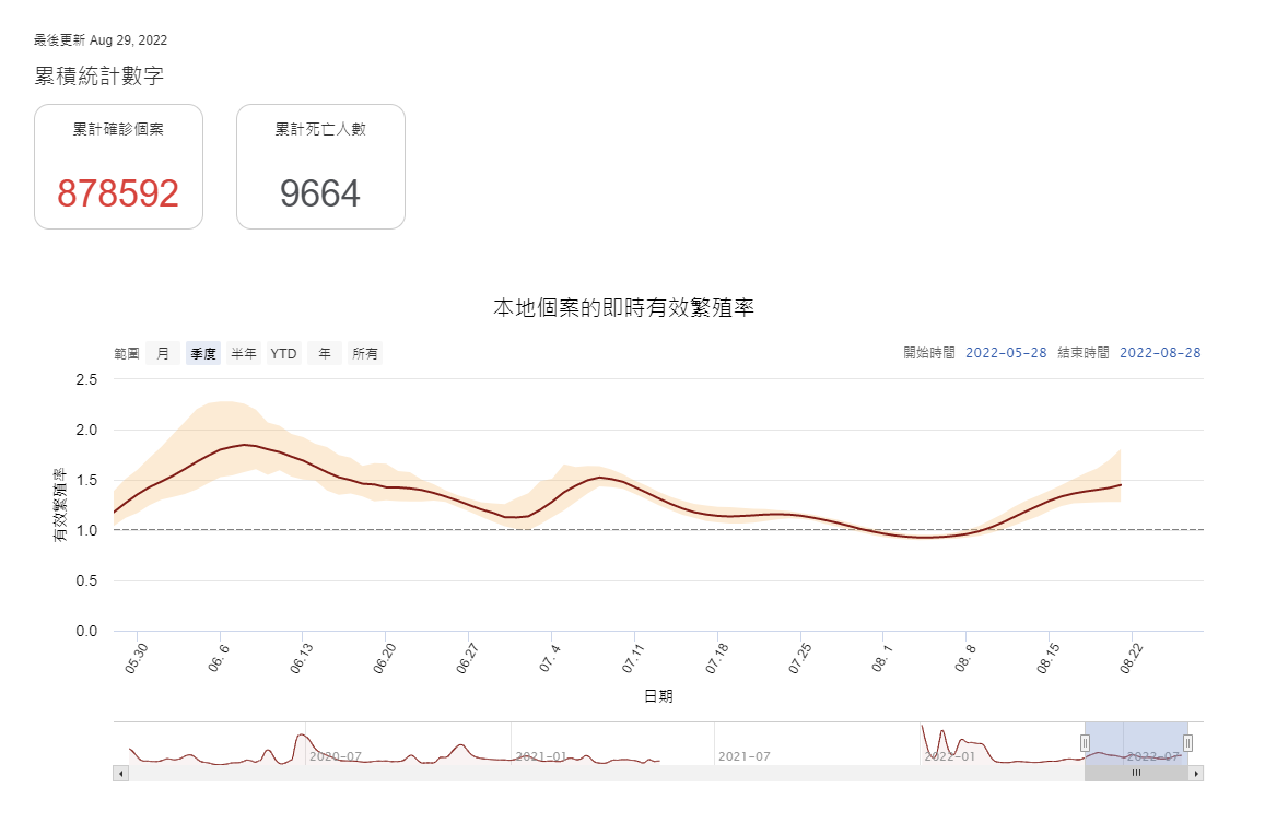 劉宇隆指,Omicron變異病毒株亞型BA.4或BA.5的傳播力相當快,令香港數字由早前每幾個月翻番,加速至近日每半個月就翻番。他又指,難以預測今波疫情何時見頂,不過預計到下月相關防疫措施都未能放鬆,需嚴陣以待。 因應每日確診數字攀升,政府更新系列防疫措施。 餐飲方面,市民28日起出席宴會時須出示24小時內新冠病毒快測陰性結果。香港餐飲聯業協會會長黃家和29日指出,參與8人以上宴會須出示快測陰性結果的措施實行首日,食客普遍願意配合,中秋節已有2至3成訂座,未有受快測措施影響,相信未來一周市民會習慣有關安排。