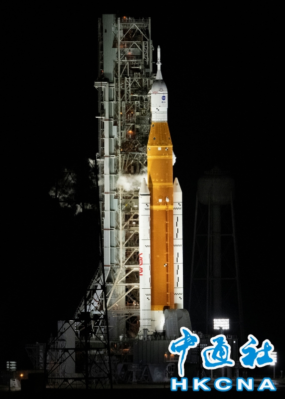•   當地時間8月29日,美國國家航空航天局(NASA)巨型探月火箭“太空發射系統”被固定在佛羅里達州肯尼迪航天中心的發射架上。當日,“太空發射系統”因故障推遲發射。NASA/Joel Kowsky 供圖 香港中通社圖片