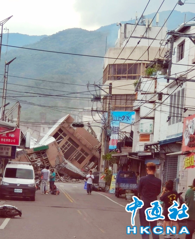 中通社現場:台灣6.8地震致花蓮玉里三層樓倒塌人員受困分享到: