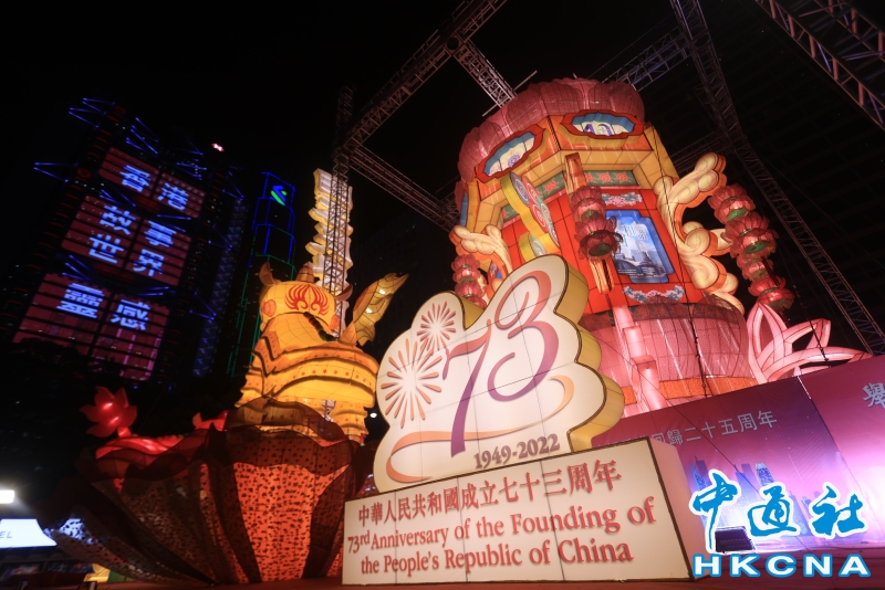 香港中環巨型吊掛宮燈換新裝賀國慶分享到: