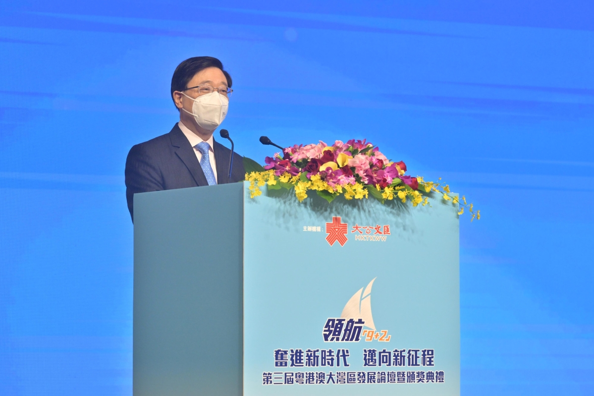 李家超在領航“9+2”第三屆粵港澳大灣區發展論壇致辭 圖源:香港政府新聞處 當日,李家超出席第三屆粵港澳大灣區發展論壇暨頒獎典禮時表示,二十大報告支持推進粵港澳大灣區建設,鞏固提升香港在國際金融、貿易、航運航空、創新科技、文化旅遊等領域的地位。 【編輯:王軼南】