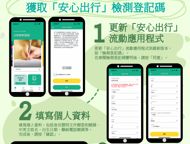 樣本圖片 持有“檢測登記碼”二維碼的市民在社區檢測中心或流動採樣站準備接受檢測時,又或因應限制與檢測宣告進行強制檢測時,只需向工作人員出示二維碼供即場掃描,便可取代工作人員人手輸入資料的登記程序,減少雙方接觸。 不過,這一項便利措施卻引發不少關注,有市民誤以為以後檢測要收費;社交平台也流傳大量訊息,指如市民如未能在10月底前登記檢測登記碼,需自費進行核酸檢測。 對此,醫衛局發言人澄清指,即使願檢盡檢人士在10月底前,未登記檢測登記碼,也只需在檢測點現場登記檢測碼,即可免費檢測。 醫衛局重申強檢人士、特定群組人士、公立醫院及院舍探訪人士,以及所有60歲或以上長者,即使沒有檢測登記碼,仍然可以繼續免費檢測。 至於如何獲得檢測登記碼,首先將“安心出行”更新至最新版本,然後點選“檢測登記碼”。在參閱檢測登記碼聲明後,按“同意”。