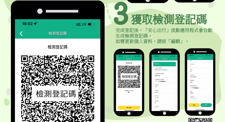 完成登記後,“安心出行”會自動生成“檢測登記碼”。如需更新個人資料,請按“編輯”。(完) 【編輯:李明珠】