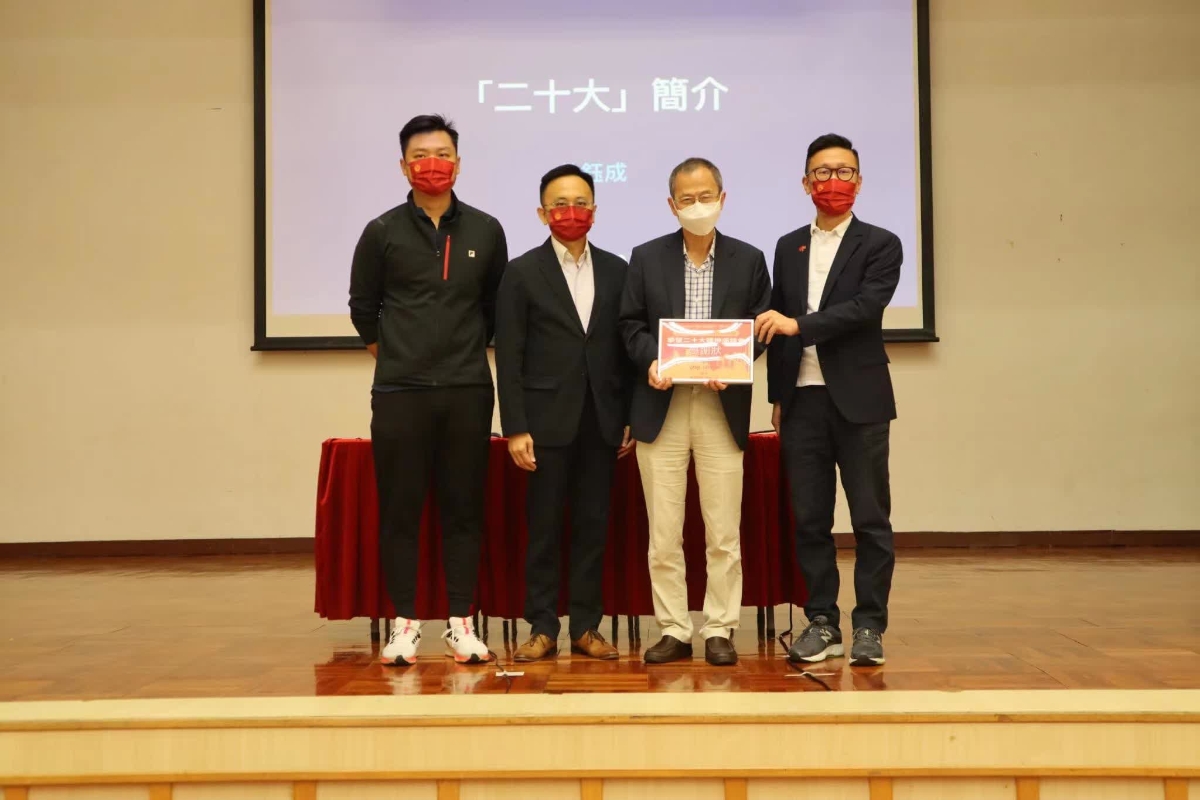 深水埗各界辦學習二十大精神座談會 圖源:受訪者供圖 座談會由深水埗民政專員黃昕然及深水埗居民聯會理事長陳偉明主持,邀請主講嘉賓曾鈺成闡述二十大報告的重點,包括全面貫徹習近平新時代中國特色社會主義思想、堅持和完善“一國兩制”、發展壯大愛國力量和推進社會主義現代化新征程等。立法會議員鄭泳舜與深水埗200位地區人士一同出席座談會。