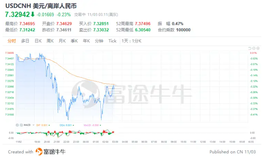 香港新聞網11月3日電 市場變幻莫測!在美聯儲加息75個基點,並再度釋放鷹派信號的背景之下,美元指數竟然沒漲反跌,而亞洲兩大貨幣——人民幣和日元卻集體上漲。這背後的邏輯究竟是啥? 美聯儲周三批准連續第四次加息75個基點,並暗示其貨幣政策可能會改變以降低通脹。幾周以來,市場一直在期待這一舉措,美聯儲將短期借款利率上調 0.75 個百分點至 3.75%-4% 的目標區間,這是自 2008 年 1 月以來的最高水平。 隨後,鮑威爾的一席話澆了市場一盆冷水。這位美聯儲主席以一貫的鷹派風格,駁斥了美聯儲可能很快會暫停加息的想法,儘管他表示,預計下一兩次會議將討論放緩緊縮步伐。他還重申,降低通脹可能需要決心和耐心。在他發聲之後,美股快速跳水,美元大幅拉升,匯市波動巨大。 但有意思的是,美聯儲加息還不到24小時,北京時間11月3日白天,人民幣和日元卻集體飈升,美元指數反而出現殺跌。首先,我們來看一下人民幣。