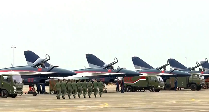 11月8日珠海航展開幕,“八一”飛行表演隊就位。 圖源:直播截圖 一批航空航天新產品和尖端裝備將帶來首展首秀 目前多型飛機已經完成了首次場地適應性訓練。值得注意的是,本屆航展上,殲-20首次中降珠海進行展示,運油-20首次在空中飛行展示。