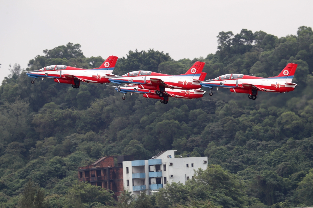 11月7日 ,“紅鷹”飛行表演隊進行檢驗性飛行。 圖源:中國日報
