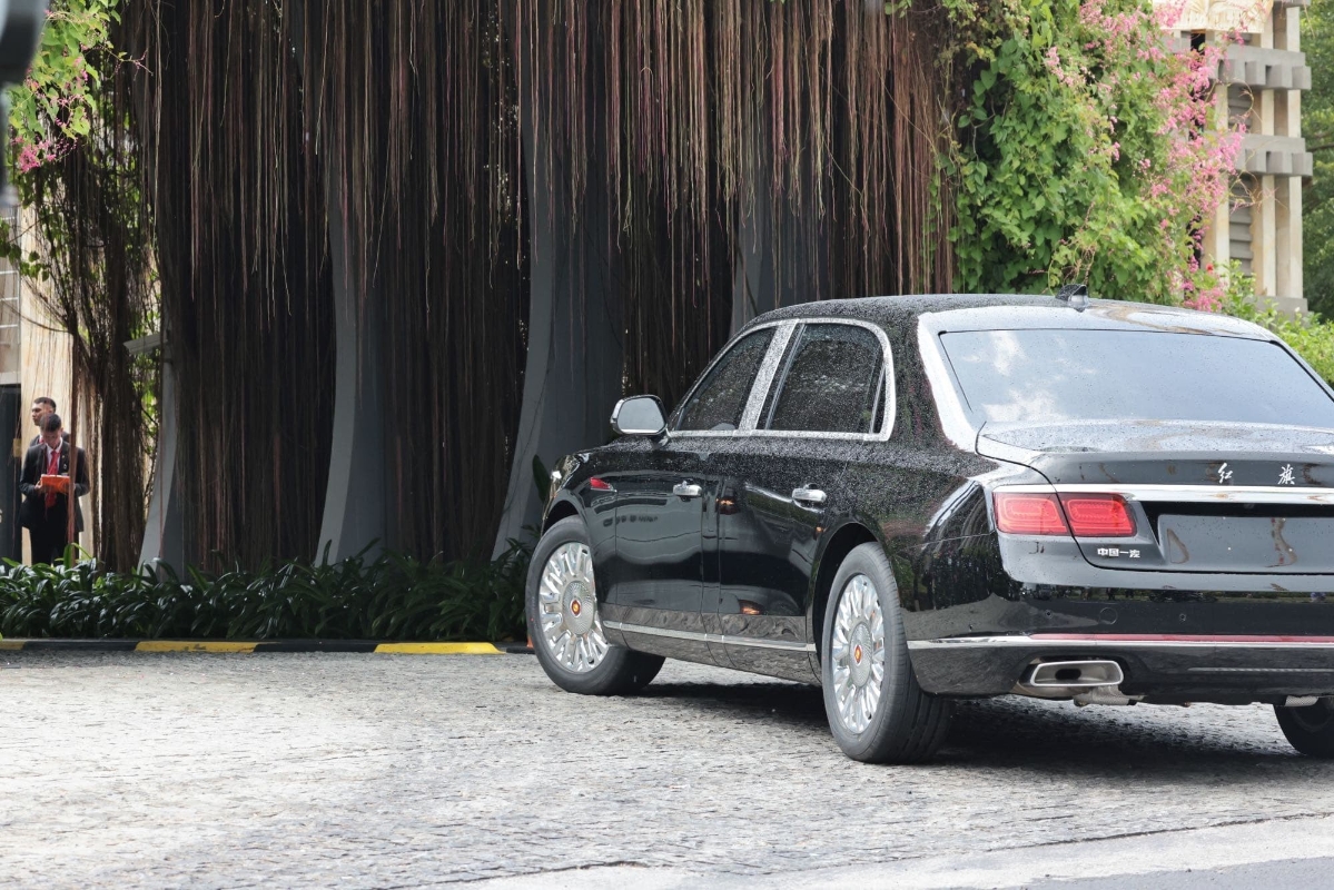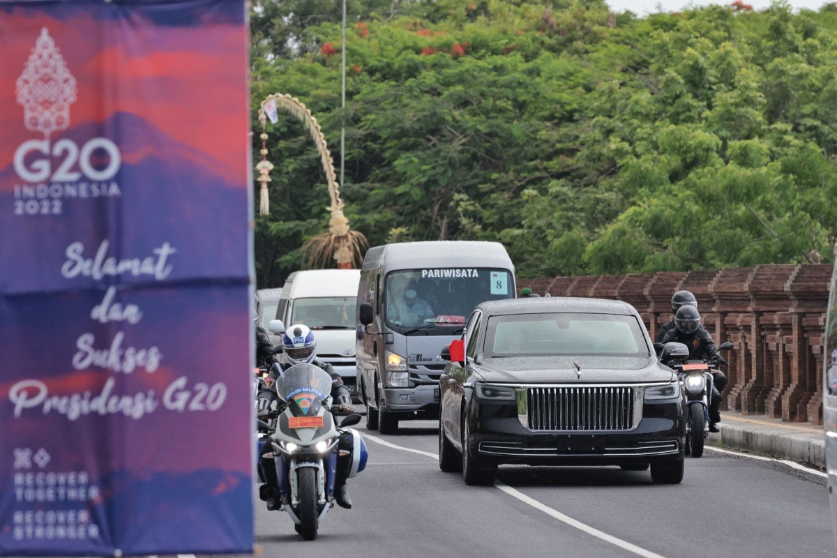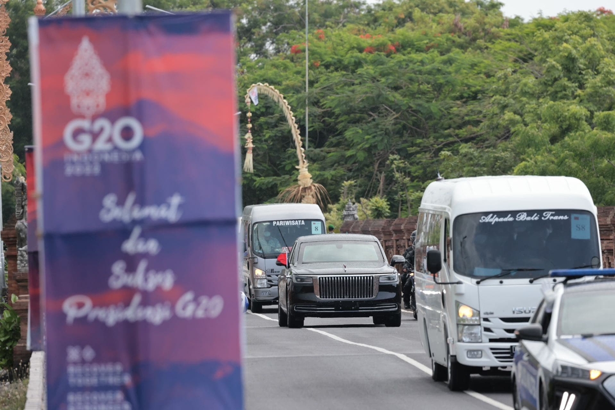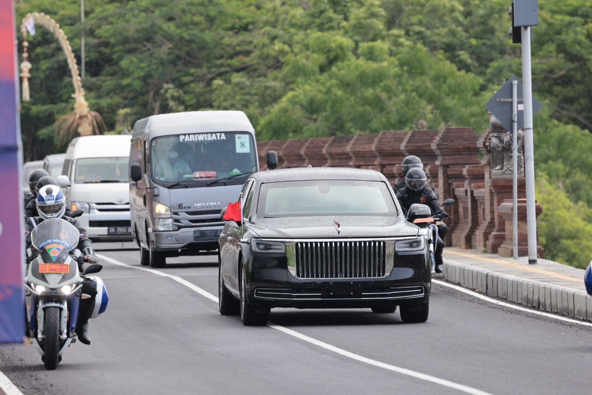 香港新聞網11月15日電 二十國集團(G20)峰會11月15日至16日在印尼巴厘島舉行。15日上午,中國紅旗車進入G20峰會現場。