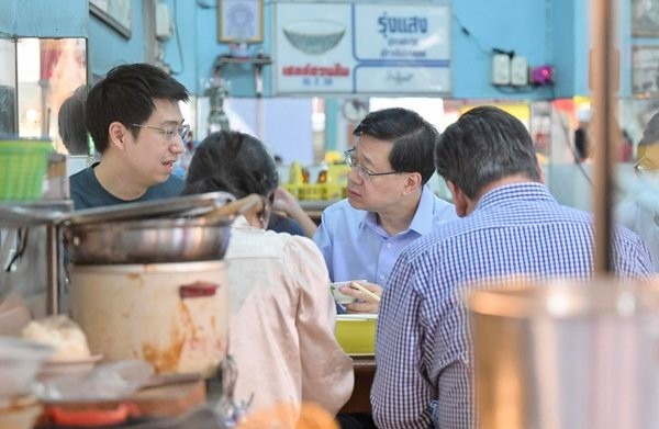 香港中通社11月20日電 香港特區行政長官李家超在泰國曼谷結束亞太經合組織會議後,繼續率領香港“商貿團”在當地訪問,20日參觀了兩間企業。他早上與隨行的商務及經濟發展局局長丘應樺、特首辦主任葉文娟,以及三名香港駐曼谷經貿辦人員,在當地一間店舖進行“早餐會議”。