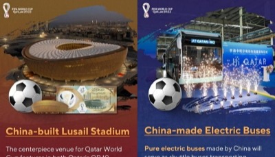 財經世界盃:在卡塔爾掘金的"中國隊”香港新聞網11月21日電 儘管中國男足沒有拿到2022卡塔爾世界盃的入場券,但另一支由中國企業組成的“中國隊”卻早已開赴卡塔爾,在這片商機遍地的賽場上“摘金奪銀”。大到整座體育館,小到周邊商品,都有可能發現這支“中國隊”傳遞出的東方力量。盤點卡塔爾現場的驚鴻一瞥,所能看到的大多是中國製造: 球場——中國建造 以世界盃主場館盧塞爾球場為例,這座場館由中國鐵建承建,是卡塔爾目前最大規模的球場,可以容納9.2萬名觀眾,將承擔半決賽、決賽、閉幕式等重要活動和賽事,項目的合同總額為7.7億美元。