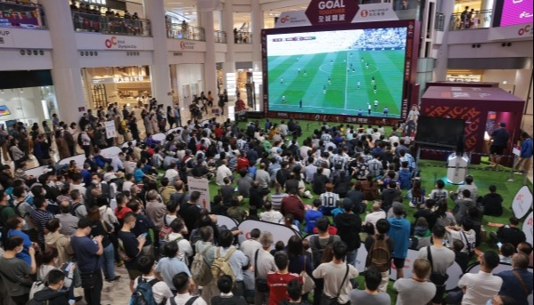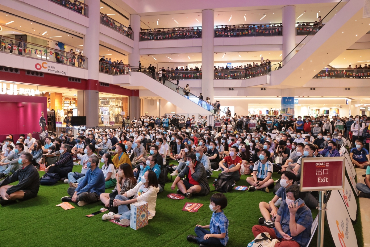 香港中通社圖片 在香港,球迷想觀看賽事需要向電視台付費,今年NowTV獲得這屆世界盃的香港地區獨家轉播權,其世界盃通行證售1080港元。因此,提供免費球賽直播的商場和酒吧餐廳成為香港一眾球迷“薅羊毛”的好去處。 今年有逾10家商場參與世界盃直播,設大屏幕供球迷免費觀賽。