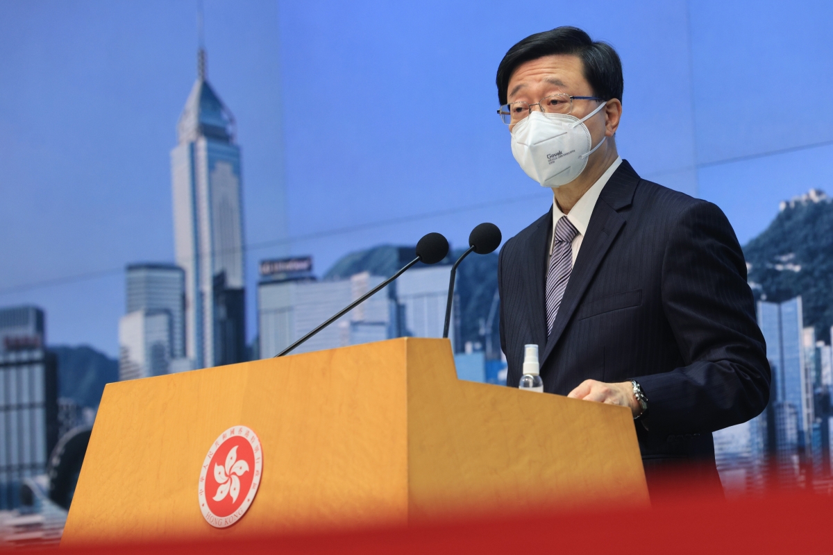(香港中通社記者 許其皓 攝) 香港特區行政長官、國家安全委員會主席李家超28日見記者,表示會建議提請人大常委會釋法。這是本屆政府上任以來首次提出釋法建議。而上一次由香港特首提請人大常委會釋法則是在2005年。