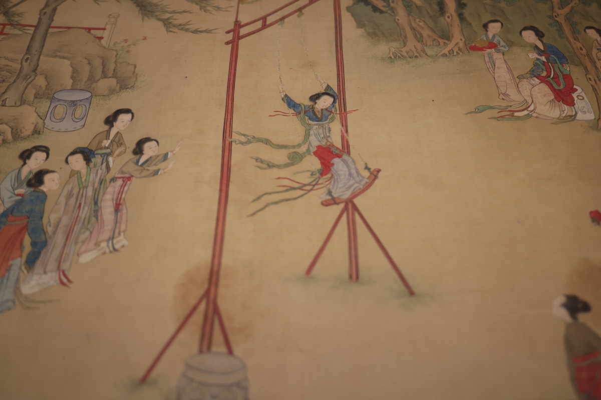 南京博物院研究員曹清(左側左一)和香港文化博物館館長(藝術)鄧民亮共用講解《古代仕女行樂圖》。
