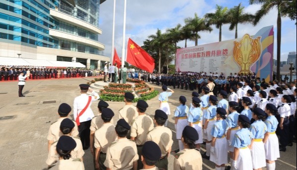 香港新聞網12月4日電 12月4日是國家憲法日。當天,香港通過多種形式,開展憲法宣傳教育活動。香港特區政府舉行憲法40周年升旗儀式,並聯同香港中聯辦合辦“國家憲法日”座談會;亦有地區團體舉辦國旗展示和嘉年華活動,增強社會對憲法的認識,弘揚憲法精神。 當天早上,香港特區政府保安局帶領轄下6個紀律部隊,以及各紀律部隊和輔助部隊屬下青年團隊聯同其他青少年制服團體,在香港海關學院舉行憲法40周年升旗儀式。