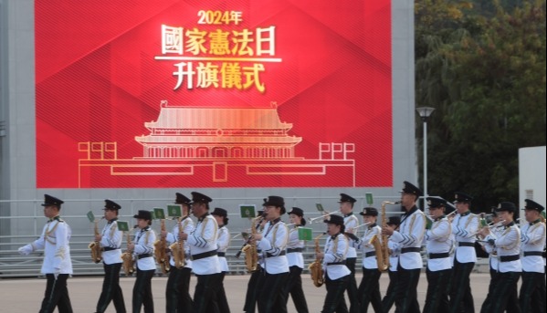 香港特區保安局12月4日舉行憲法四十周年升旗儀式。 香港中通社圖片 參與升旗儀式的紀律部隊包括香港海關、政府飛行服務隊、懲教署、消防處、警務處,以及入境事務處。各紀律部隊及輔助部隊屬下的青年團隊聯同其他青少年制服團體組成的9個方隊亦參與儀式。 儀式由紀律部隊聯合樂隊的軍樂操揭開序幕,9支青少年隊伍步操進場後,紀律部隊儀仗隊、護旗方隊以中式步操進場進行升旗儀式,現場奏唱國歌,政府飛行服務隊直升機在空中敬禮。 升旗後,護旗方隊進行下半旗儀式,全體出席人士默哀,以悼念已故前國家主席江澤民逝世。 下午,香港特區政府聯同香港中聯辦合辦的“國家憲法日”座談會在香港會議展覽中心舉行。約650名來自社會不同界別的人士出席座談會。 香港特區行政長官李家超在座談會上致辭時表示,必須堅定不移維護憲法、切實和全面準確貫徹落實憲法和基本法所保障的“一國兩制”,保持香港長期繁榮穩定。