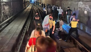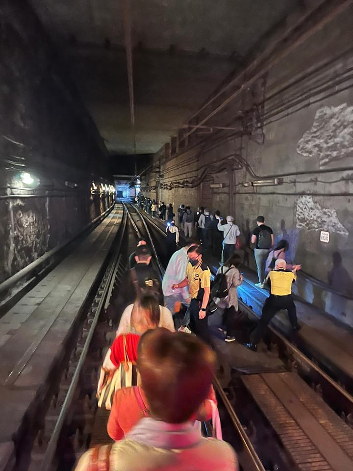 乘客要經路軌疏散離開涉事列車。網圖 【編輯:孟宜君】