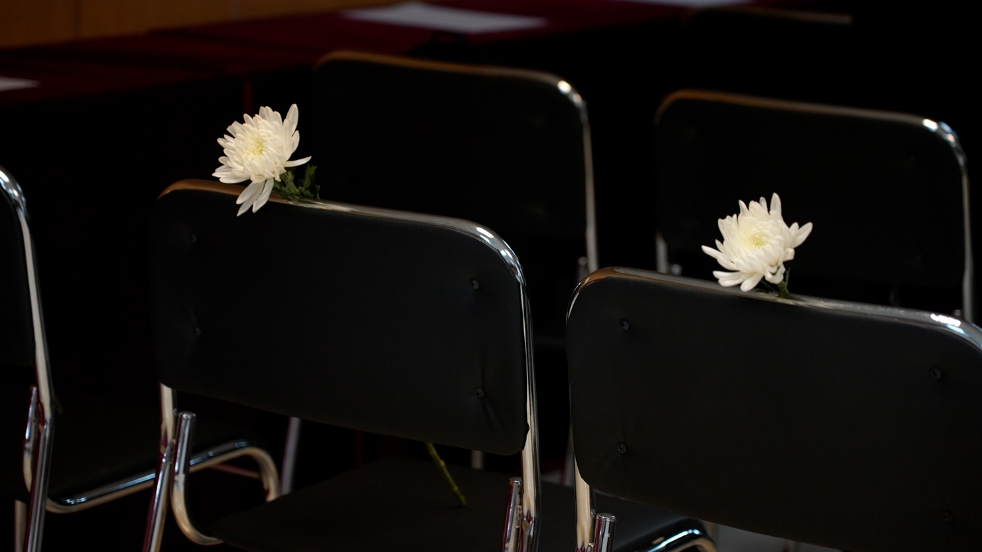 香港中通社記者 謝光磊攝 香港多個商場設點直播追悼會,不少市民在街頭、商場等的大型直播屏幕前駐足停留,神情哀傷。其餘商場亦在追悼會默哀期間,關掉電視屏幕。 不少市民身穿素色衣服,前往指定的21個社區會堂及活動中心觀看追悼會直播,民政事務處職員為市民提供鮮花及白色口罩,市民進場後獻花以示悼念。場內放置大批團體送贈的花圈。