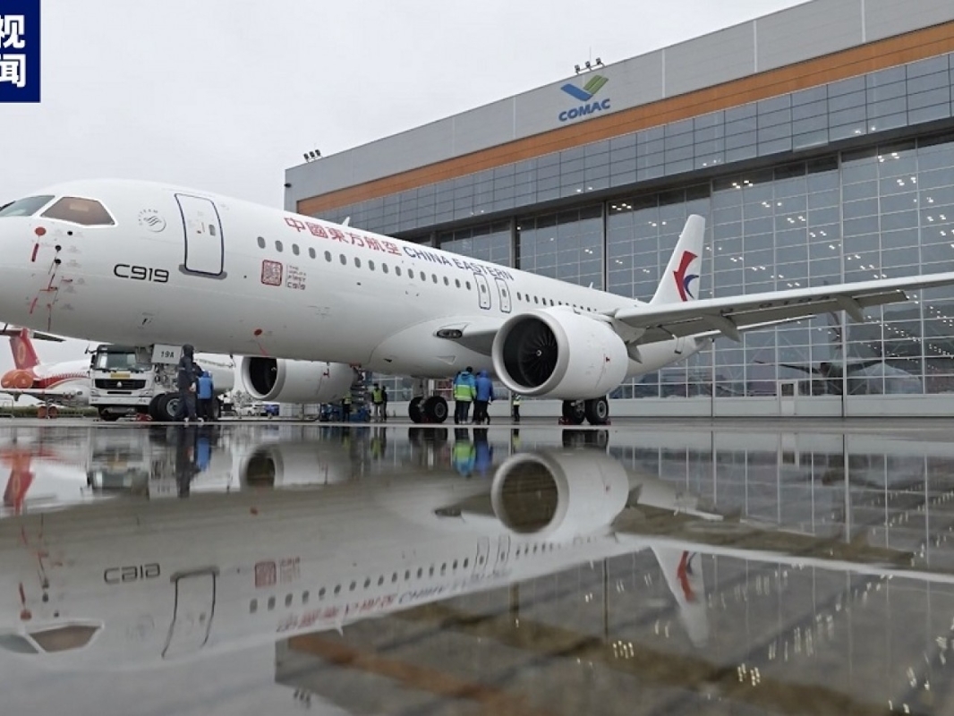 全球首架C919飛機交付東方航空。圖源:央視新聞 此次交付東航的C919大型客機有著特殊的塗裝和“身份證號”。在機身前部印有“全球首架”的“中國印”標識和對應英文。 據悉,中國東方航空作為C919的全球首發用戶,正式接收編號為B-919A的全球首架飛機。“首秀”為調機航班號為MU919的上海浦東——虹橋兩機場之間的飛行。