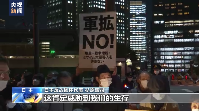 日本民眾高舉條幅、標語,對日本政府增加防衛費用表示不滿。 圖源:央視新聞 除對華表述外,日本還將在新版《防衛力整備計劃》中,明確2023年至2027年度5年的防衛費預算為“43萬億日元”左右,將引進美國製造的“戰斧”巡航導彈作為打擊敵方導彈發射基地“反擊能力”手段之一。日本輿論認為,這意味著日本將在二戰後迎來安保政策的重大轉變。 雖然尚未公佈有關文件具體的修改內容,但日本政府的行為已經引發其國內不滿。由日本憲法和國際政治專家組成的民間團體“和平構想提言會議”日前對擁有所謂“反擊能力”提出批評,認為“這將助長軍備競賽,是誘發戰爭的十分危險的行為”。共同社特別編輯委員川上高志日前發表評論文章批評稱,岸田政府欲徹底改變日本戰後的安全保障政策,徹底摘掉日本長期堅持的“和平主義”的招牌,使該國成為一個能够進行戰爭的“普通國家”,這是日本的重大轉向。(完) 【編輯:王軼南】