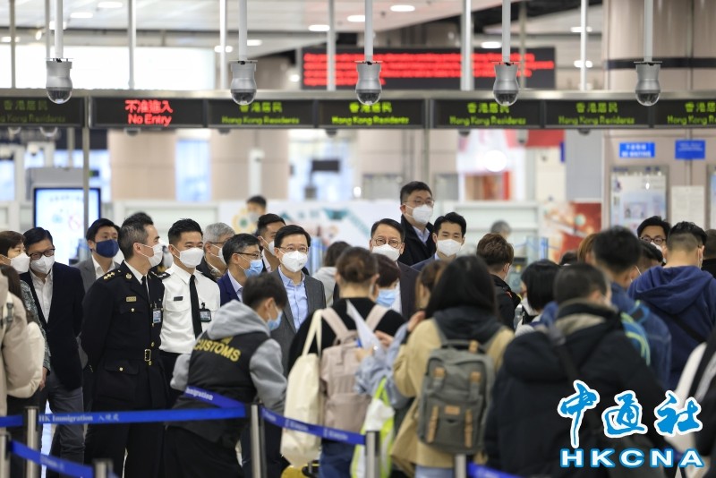 香港中通社1月8日電 香港8日起與內地恢復首階段免檢疫“通關”。香港特區行政長官李家超表示,過關名額符合需求,首日運作順暢,整體達到要求。會密切留意實際情況,和深圳市政府溝通,檢討人數和口岸安排,雙方目標是向全面“通關”有序邁進,盡快恢復正常生活,他亦希望市民配合。 當日早上,李家超視察落馬洲口岸運作,聽取海關和入境處介紹運作情況,並與市民溝通。他感受到工作人員士氣高漲,市民也很愉悅。