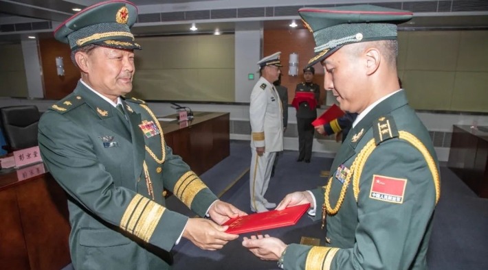 圖源:駐港部隊 “現授予下列同志列兵軍銜......”在場領導宣讀了授銜命令,現場為新兵代表佩戴21式軍裝標誌符號,新戰士們將象徵著使命和榮譽的“一道拐”扛在了肩上。 在莊嚴的八一軍旗下,新戰士們高舉右拳、鄭重宣誓,表達著正式成為一名軍人的光榮與自豪。 三個月的新兵訓練,新戰士們用不怕苦、不怕累的拼勁和時不我待、只爭朝夕的幹勁,完成了從一名地方青年向合格駐港戰士的轉變,戴上新軍銜的他們,將用奮鬥書寫一段青春無悔的軍旅華章! 【編輯:李泺】
