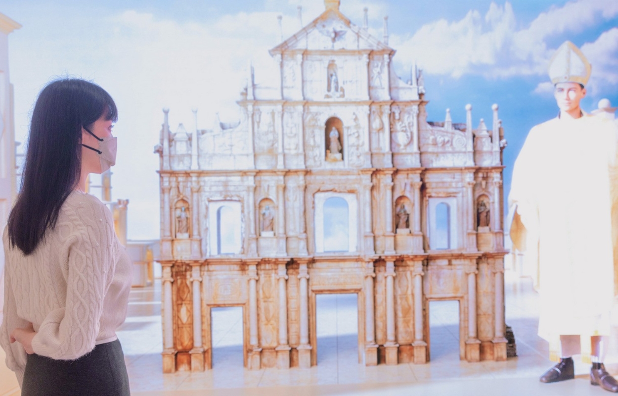 (圖片:澳門特區政府文化局) 由澳門特區政府文化局主辦的“時空穿梭‧遊歷三巴”以VR技術為大家帶來沉浸式體驗,重現400年前“聖保祿天主之母教堂”大三巴原貌,透過電腦技術帶大家穿越時空,回到當年。體驗館設於天主之母教堂遺址廣場(大三巴),是首次在澳門世界文化遺產綜合運用裸眼3D及VR等擬真技術,讓觀眾切身感受聖保祿學院天主之母教堂的原本風貌!