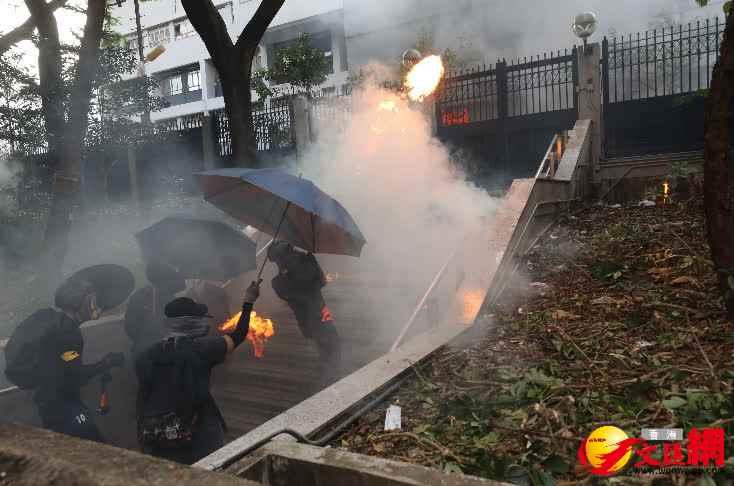 香港中通社1月28日電 2019年8月11日,香港尖沙咀警署外有大批示威者集結,向警署投擲汽油彈,令一名警員下肢燒傷。事後7人被捕,案中6人被裁定暴動罪成,28日在區域法院被判處監禁36至45個月。另一名暴動罪脫的被告,因管有兩支鐳射筆被判監11個月。