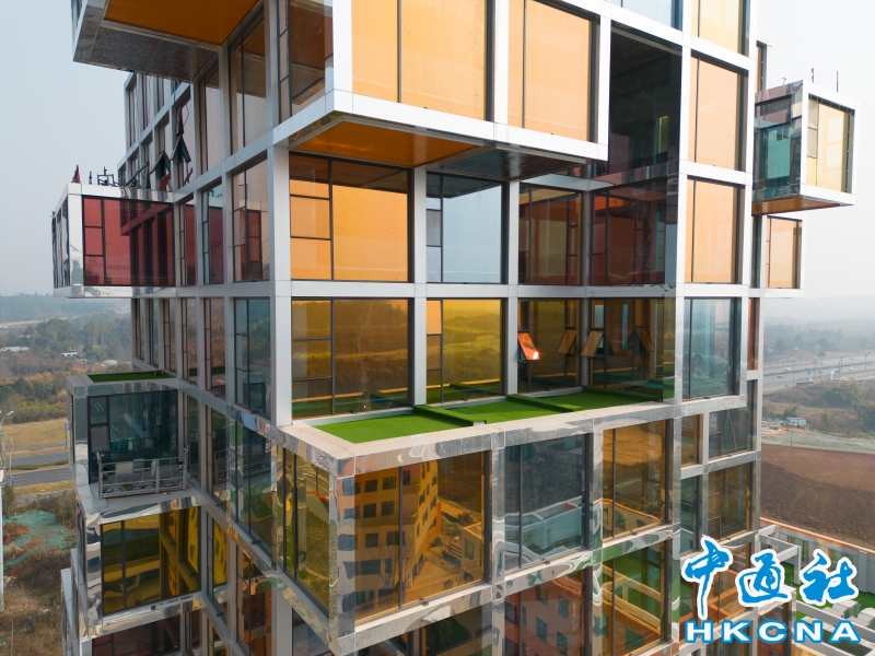 成都一在建大樓用五彩玻璃打造“像素盒子”分享到: