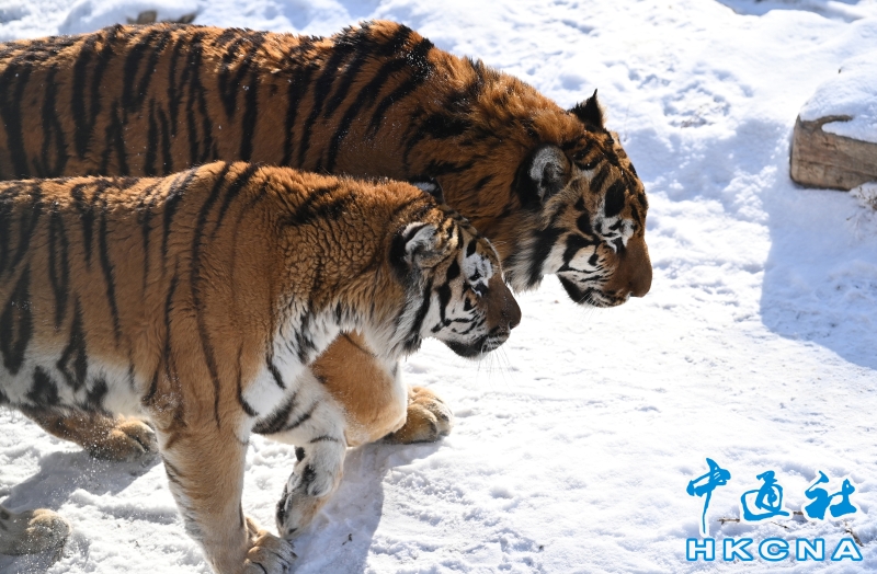 •   2月2日,在長春動植物園內,東北虎在雪地裡親昵同行,展現出“叢林之王”可愛的一面。 香港中通社圖片