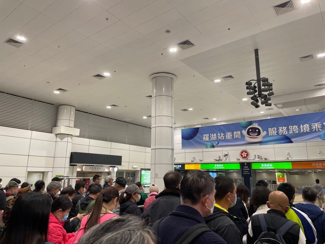 香港新聞網2月6日電(記者 李明珠)經過1098天的等待,香港與內地6日全面通關,暫停許久的羅湖口岸重開,不少市民搶閘過境。