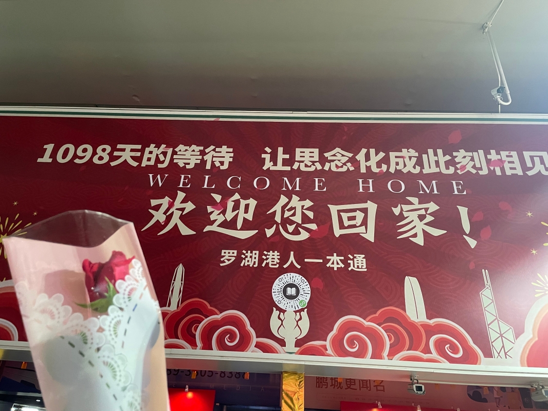 香港中通社圖片(記者 李明珠) 當日早上5時半,首班前往羅湖口岸的東鐵綫班車在紅磡站開出,不少車廂坐滿攜帶大小行李的乘客。經過45分鐘之後,伴隨著一聲“下一站羅湖站,請攜帶您的行李準備下車”,車上的乘客蜂擁而出,衝向地鐵閘口。 作為歷史性的大事,媒體也兵分多路進行報導。有攝影師在紅磡站記錄首班前往羅湖列車的發車時刻,羅湖口岸更是聚集內地、香港和外國的媒體記者。 港漂李小姐當日要去深圳乘搭回家鄉的飛機,因此選擇趕最早的東鐵綫列車入境深圳。她告訴香港新聞網記者,已經提前做好海關申報,全程使用自助通關,僅用了三分鐘就順利過關。 深圳的羅湖口岸出口也被佈置一新,一個紅色的展板上寫著“1098天的等待,讓思念化成此刻相見,歡迎您回家!”,現場還有工作人員派送鮮花,不少媒體在一旁記錄這一時刻。