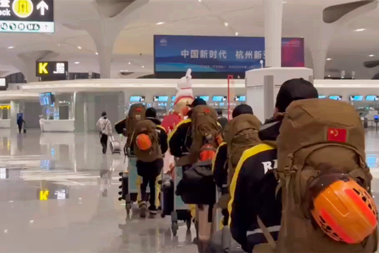 2月7日一早,杭州公羊隊救援力量趕赴土耳其協助救援。圖源:@杭州日報