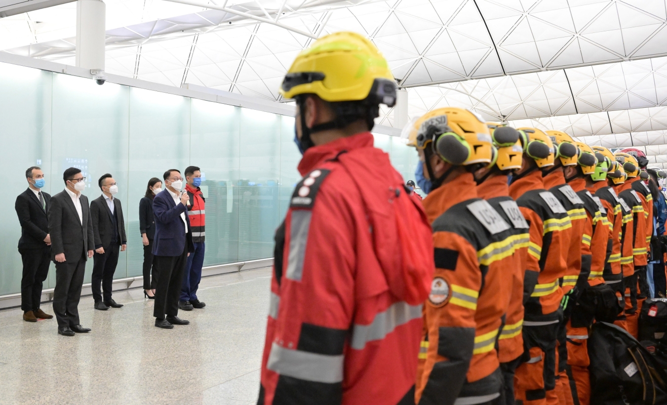 香港特區政府新聞處圖片。 李家超表示,土耳其強烈地震造成嚴重傷亡,令人痛心,港府派遣一隊約59人搜救隊伍,前往土耳其地震災區協助搜救工作。他又說,自己目前仍身處阿聯酋進行訪問行程,感謝特區搜救隊各成員體現專業精神,協助土耳其當局拯救生命。 李家超又指,期望市民和他一起為搜救隊打氣。特區政府會全力支援搜救隊一切所需,使他們能順利完成救援工作。 搜救隊由保安局、消防處、入境事務處和衞生署等人員組成,昨晚在香港國際機場出發前往土耳其,並會聯合內地的救援隊,在當地提供援助。 署理行政長官陳國基、保安局局長鄧炳強及土耳其領事館代表昨晚到場送行。 陳國基昨晚見記者時表示,代表特區政府向受難家屬致以最深切的慰問和哀悼,港府在接到土耳其駐香港(總)領事館要求提供協助後,在很短時間內組織了一支拯救隊,到土耳其當地進行搜救工作。這支搜救隊由一位副消防總長帶領,有59名隊員,其中包括保安局、入境處、消防處,亦有衞生署人員,包括醫生和護士一同前往,行動首要任務是搜救被埋的人。 陳國基說,今次行動非常有意義,亦可以發揮互相幫助的精神。“這互相幫助不單止是在我們國內,亦要幫助其他國家的人民。有需要的話,我們都一定會幫助,這個才是發揮最大的互助精神”。他向參與行動的隊員,表示崇高的謝意和敬意,認為他們在短時間內自願參加含有一定危險性的任務,其專業精神令人非常敬佩,亦引以為傲。他強調,說港府會繼續提供支援,包括器材和人員,不排除會再派人員前往當地。 (完) 【編輯:孟宜君】