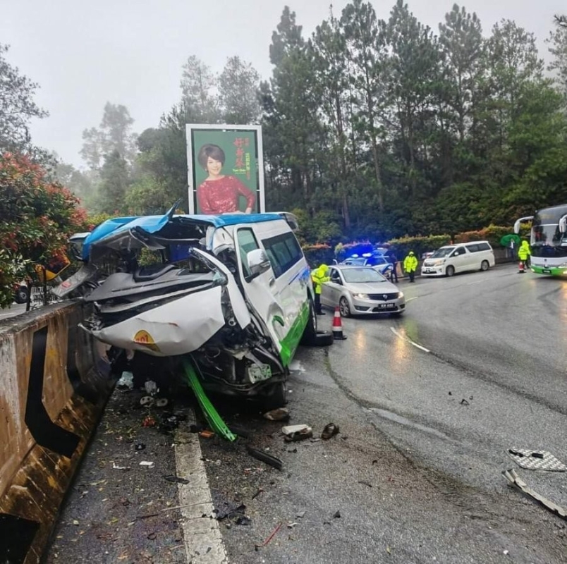 馬來西亞雲頂車禍現場。圖源:東方報導 當地時間8日下午,馬來西亞彭亨州雲頂旅遊勝地的下山路段約4.8公里轉彎處發生一起車禍。據當地媒體報道,一輛載有14人的旅遊客車在行駛時失控撞上分界堤,客車車頭被撞毀。據當地警方公佈,車上乘客均為60歲以上長者。目前尚有2名70歲以上長者在吉隆坡醫院急救病房中搶救。 警方當晚公佈7死者名單,并呼籲目擊者提供線索,協助調查這起意外事件肇因。