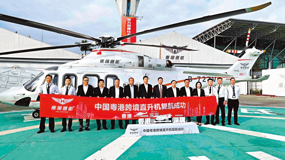 粵港跨境直升機2月8日復航(圖片:香港文匯報) 2019年6月28日,東部通航獲得中國001號跨境飛行許可,在空軍聯合參謀部、中國民航局、中國民航局空管局、深圳市政府、香港特區行政長官辦公室、香港民航處、海關、深圳寶安國際機場等機構支持下,實現深港直升機跨境首飛。自2020年初開始,因疫情影響,跨境飛行被按下了暫停鍵。隨著香港與內地全面通關,2月8日,深港直升機跨境飛行在第一時間實現全面復航。