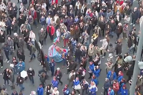 香港中通社2月12日電 法國11日再爆發全國大遊行,反對政府退休制度改革,有近100萬人參與遊行示威。 法國最大工會、勞工民主聯合會,當日再次號召公眾上街示威,反對政府推行退休制度改革,將法定退休年齡由62歲延長至64歲,並推遲領取全額退休金年齡。 工會在全國多地舉行約250場集會,期望人數能超過上月的100萬人。法國內政部指,首都巴黎以及尼斯、馬賽等多個城巿有96.3萬人參加遊行,僅巴黎便有9.3萬人。內政部同時指這個數據高於2月7日的集會,但少於1月31日遊行的280萬人。