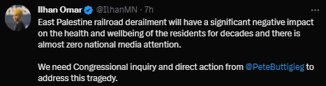 俄亥俄州東部小鎮東巴勒斯坦事發地景象。圖源:推特 根據調查報告,這起事故發生在美國當地時間2月3日晚8時54分左右,當時諾福克南方鐵路公司鐵路東行的一輛普通商品貨運列車在俄亥俄州東巴勒斯坦的1號主軌道上脫軌。 聯邦調查人員透露,列車工作人員在事發前不久收到了車軸機械故障的警報。監控錄像也顯示火車脫軌前,有車軸已經著火。出事火車一共有38節車廂脫軌,事故現場火光衝天、毒煙彌漫的視頻震驚全球網民,有美國人將這場災難比作“俄亥俄版切爾諾貝利”。 綜合美媒報道,拜登政府及俄亥俄州政府經過環境采樣檢驗後,很快就表示當地“空氣安全”、“水質安全”,勸說撤離居民回家。不過有專家認為,此次洩漏事件無異於“用化學物質毀了一個城鎮”,預計5年-20年後,當地居民會出現很多癌症患者。 一位當地農民告訴當地媒體,自從化學物質釋放以來,他飼養的動物就開始生病。據他觀察,釋放出的煙霧對動物和人“絕對不安全”。一些居民表示,他們已經出現頭痛和惡心的症狀。 一對住在距火車脫軌地點約5英里的夫婦稱,他們在當地河流中發現了數百條死魚。其他人還在社交媒體上傳了當地出現死雞、死狗和死狐狸的照片。 當地民眾已出現恐慌情緒,許多人因擔心毒氣洩漏造成水源污染,開始到超市搶購純淨水,部分超市還出現純淨水斷供的情況。