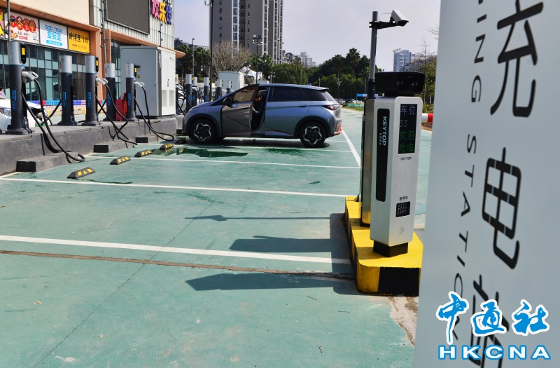 •   2月15日,福建福州,一輛新能源汽車准備在充電站充電。中國國家能源局新聞發言人梁昌新13日表示,中國已建成世界上數量最多、分布最廣的充電基礎設施網絡。 香港中通社圖片