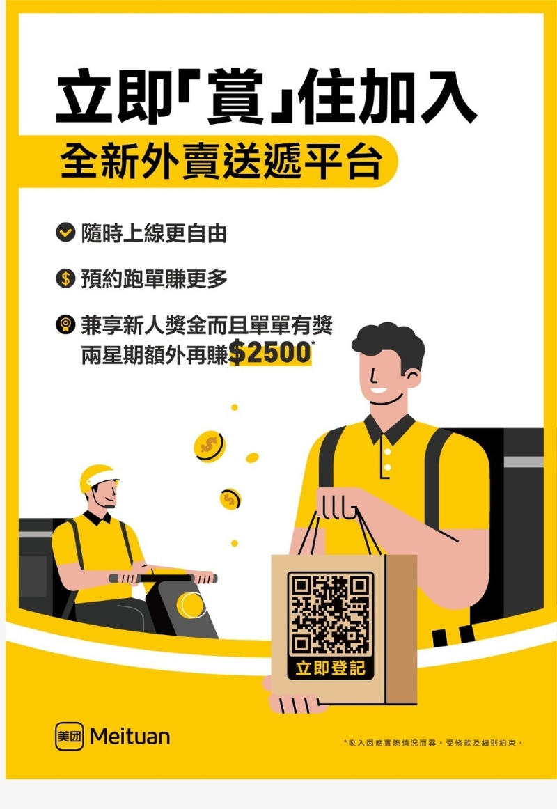有招聘文件顯示,美團招募電單車車手、單車騎手及步兵三種送遞員。送遞員收入由配送服務費、活動獎勵及組別額外服務費組成,其中活動獎勵部分更設有新人獎賞、特別節日獎賞和活躍獎等多個項目。為吸引送遞員加入,美團開出特別迎新獎賞,14日內完成目標單量即可獲額外2500港元。 以行業標準一小時內送遞約兩單計,假設送遞員當月做滿500單且獲得所有獎賞,步兵收入可超過2萬港元,車手收入最高可達3.5萬元。以此計算,新人期間每張訂單平均收入將高出同業近兩成。 香港媒體引述消息指,送遞員招募是第一步重要準備工作,相信美團會於數月內正式推出外賣服務。 (完) 【編輯:徐嘉儀】