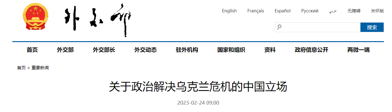 中國發布關於政治解決烏克蘭危機的中國立場香港新聞網2月24日電 在俄烏衝突爆發一周年之際,中國外交部網站24日9時發佈了關於政治解決烏克蘭危機的中國立場。該方案在啟動和談、解決人道危機和戰後重建等12個領域,表達了中國的立場和關切。