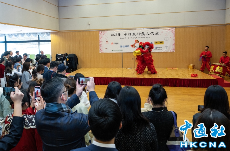 •   2月25日,2023年中日友好成人儀式在北京舉行。這是該項友好交流活動時隔三年再次舉辦。圖為儀式上的中國傳統舞獅表演。 香港中通社圖片