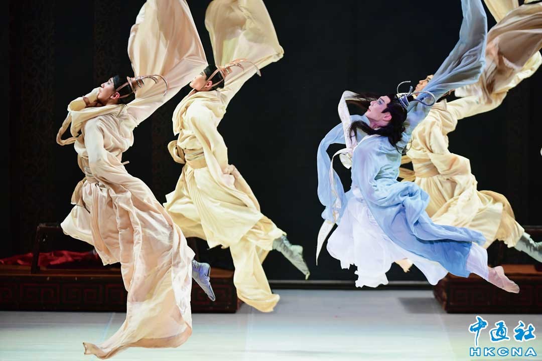 2月21日晚,由鄭州歌舞劇院創作的、中國舞蹈最高獎“荷花獎”獲獎作品、大型舞劇《水月洛神》在深圳保利劇院上演。 (香港中通社記者 聞子攝)