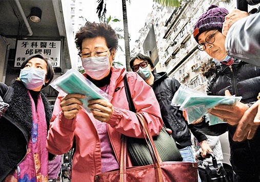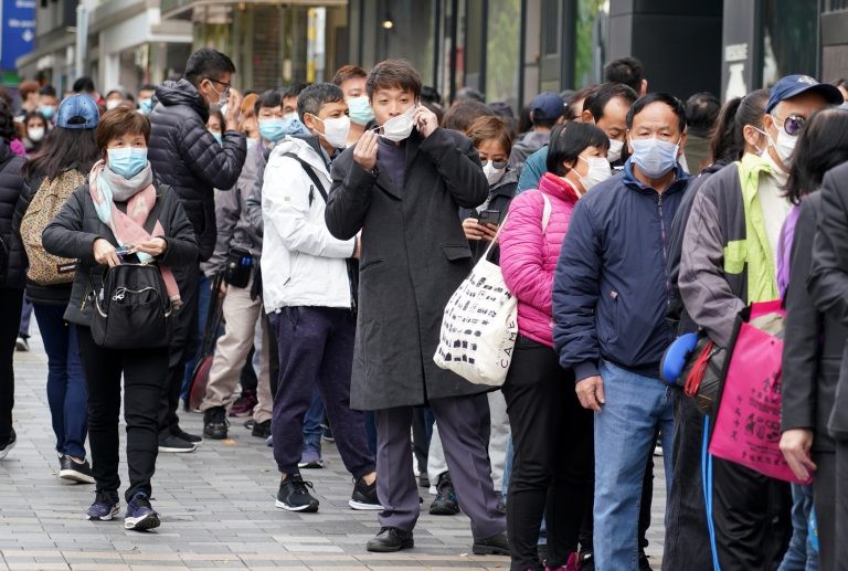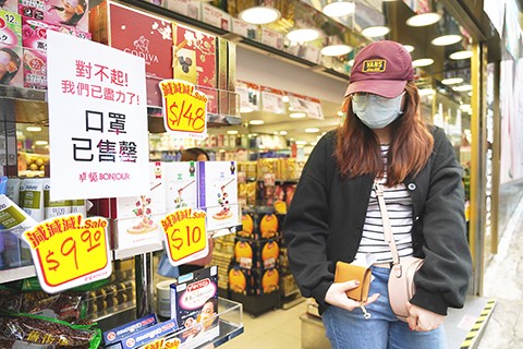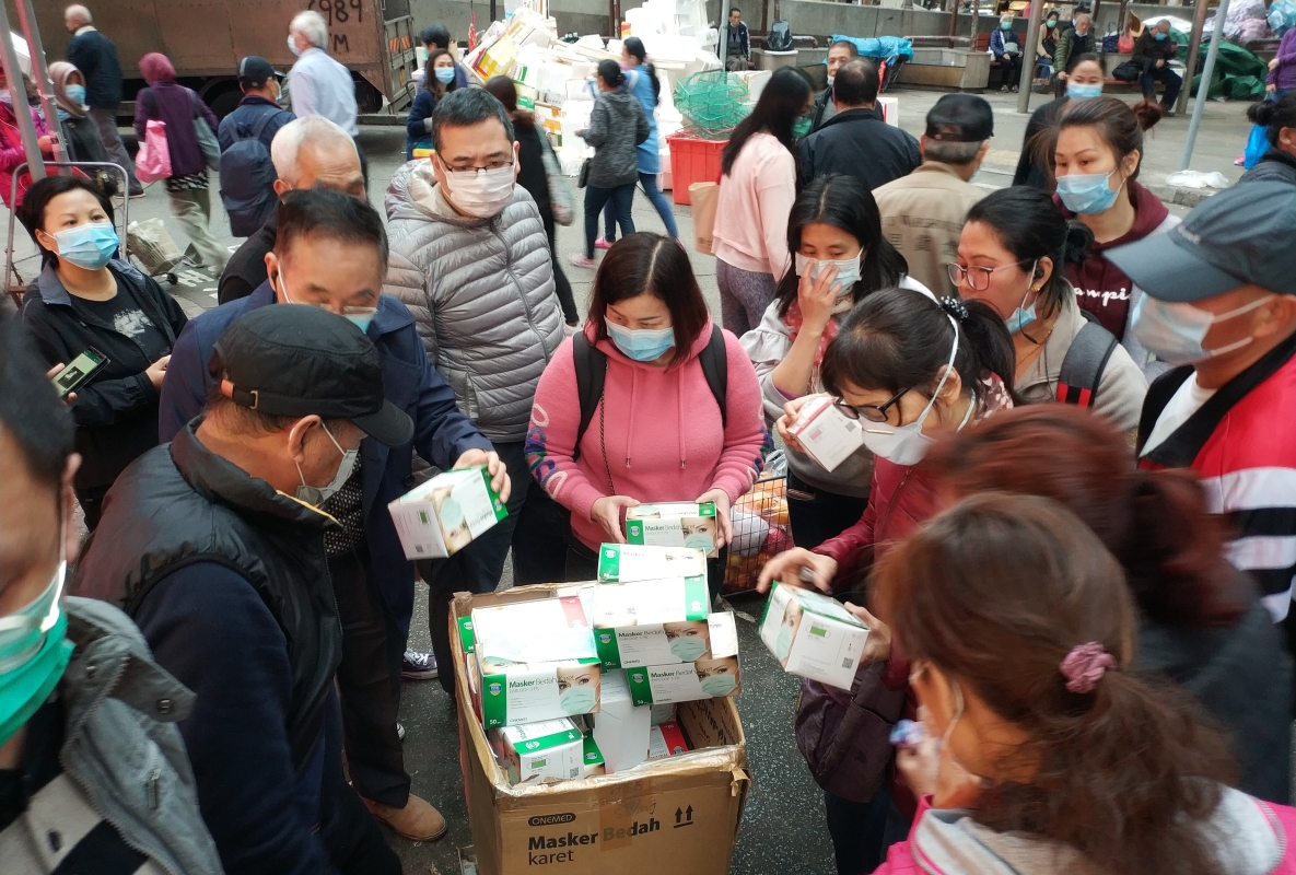 有團體向有需要的人士派發口罩。 香港市民在經歷過2003年沙士疫情後心有餘悸,在2020年1月下旬,已經陸續有市民佩戴外科口罩,而這股口罩熱潮亦蔓延開去。適逢當時臨近農曆新年,內地各大工廠及商家進入長假期,在供應短缺下,香港口罩價格急升,市民瘋狂排隊搶購。當時各大藥房、超市不時看到搶購口罩的人龍。香港特區政府一度要委託物流署進行招標及向內地政府尋求協助,以解決問題。另外,亦有團體向有需要的市民免費派發口罩。