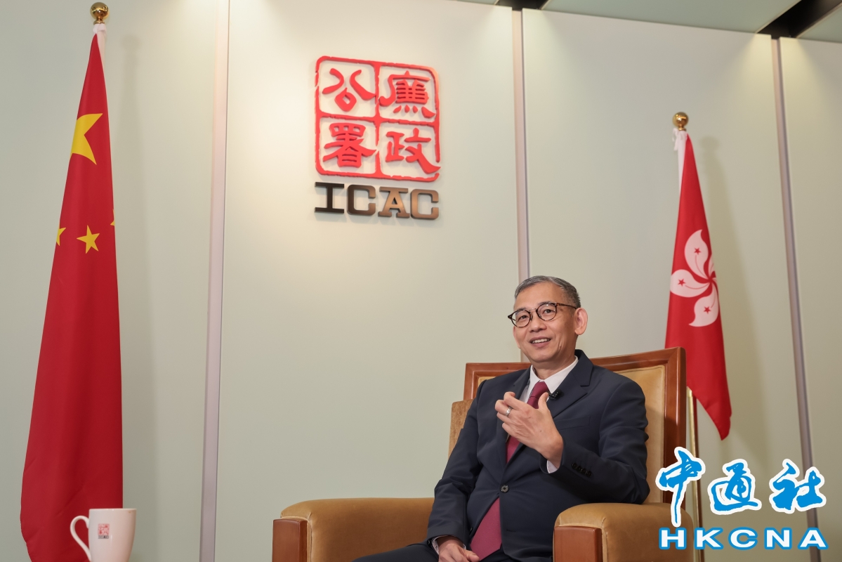 廉政專員胡英明上任8個月,接受香港中通社專訪。香港中通社圖片