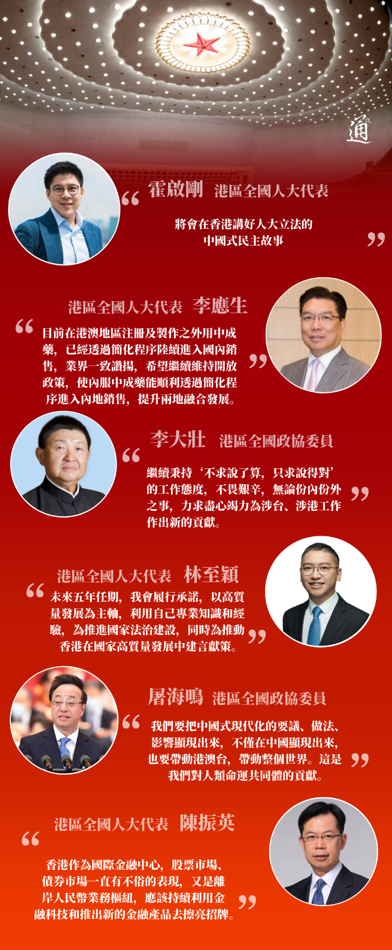 港區全國政協委員李偉斌表示,作為一個香港委員,我希望一國兩制下的香港能在中國式現代化的進程中發揮出不可或缺的獨特作用。